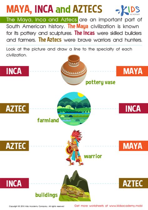 Maya, Inca and Aztecs Worksheet for kids from www.kidsacademy.mobi