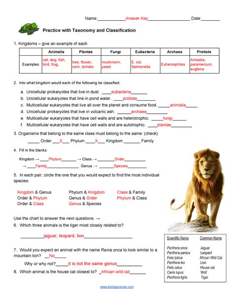 Some of the worksheets for this concept are name score classification, biological classification work answer key,. Outline the variations between the 4 main plant phyla in regard to external recognition features. Felis catus or felis cattus (domestic cat) mus musculus or mus musculus.